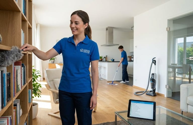 Pour un intérieur toujours propre, nos intervenant(e)s assurent l'entretien de toutes les pièces : sols, sanitaires, cuisine, vitres, dépoussiérage et rangement quotidien. Nous vous aidons ainsi dans la gestion globale du foyer.